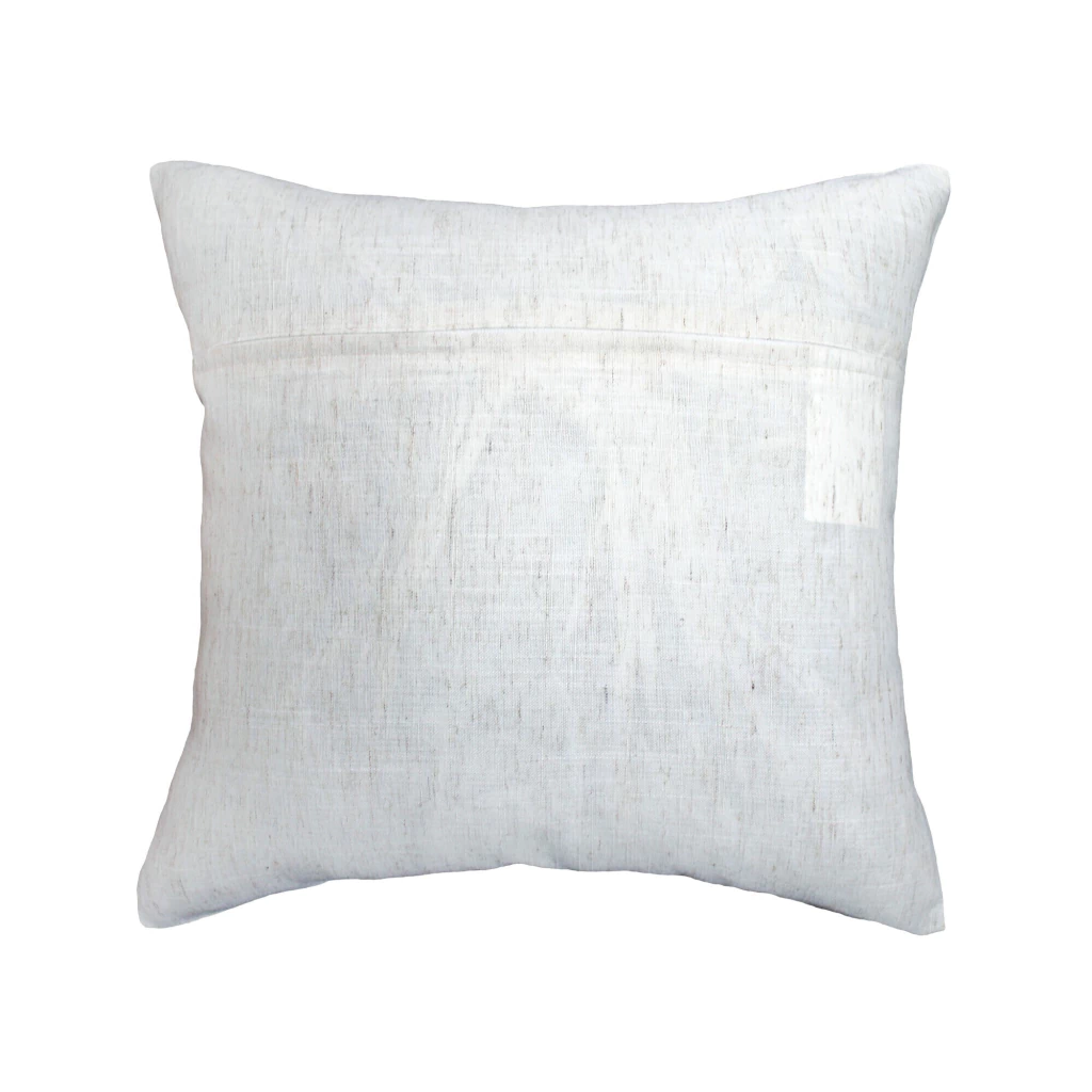 Capa de almofada produzida em algodão costuradas manualmente. Possui tecido liso na parte de traz e zíper embutido, com bordados. Textura rústica.