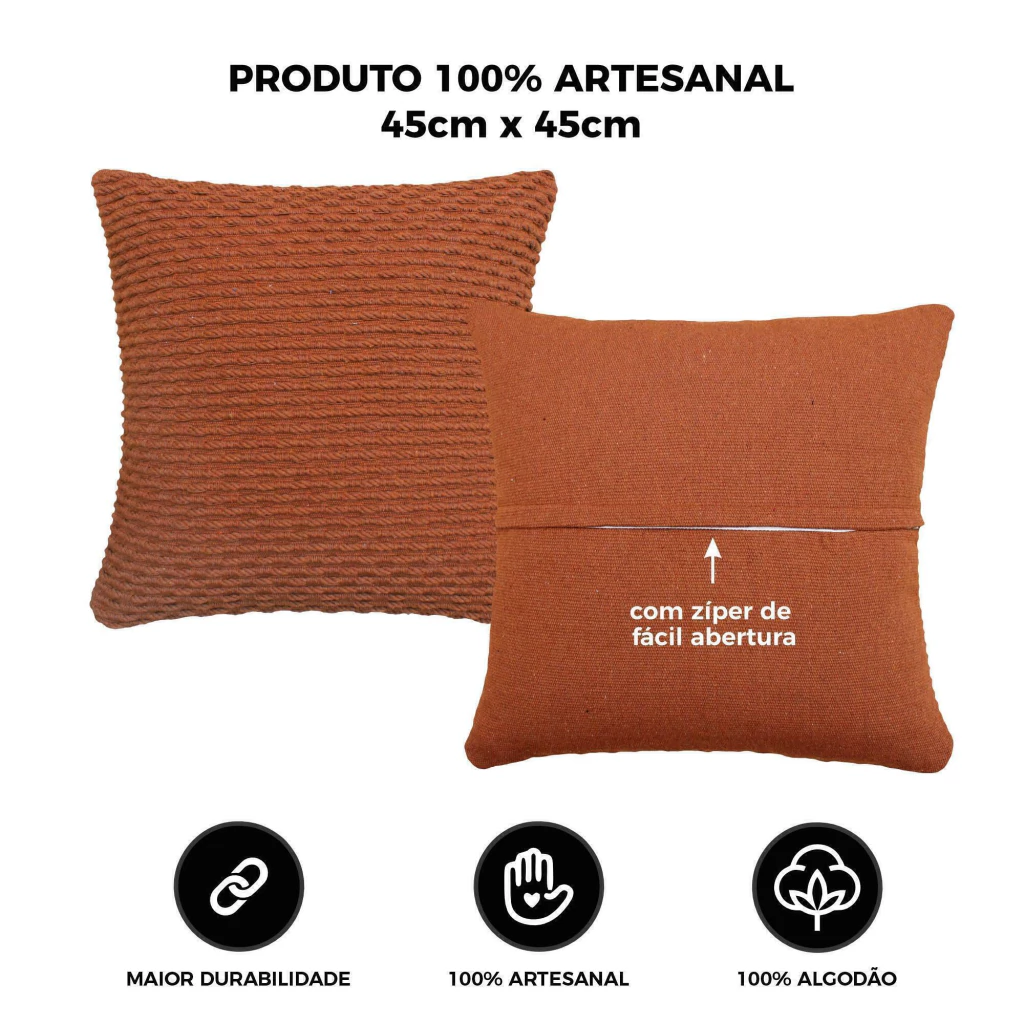 Especificações: - Tamanho: 45 x 45 cm (Produto artesanal, pode haver variação de até 5% nas dimensões) - Cor: Caramelo - Material: Tecido de alta qualidade, durável e confortável ao toque - Fechamento: Zíper invisível para fácil colocação e remoção do enchimento