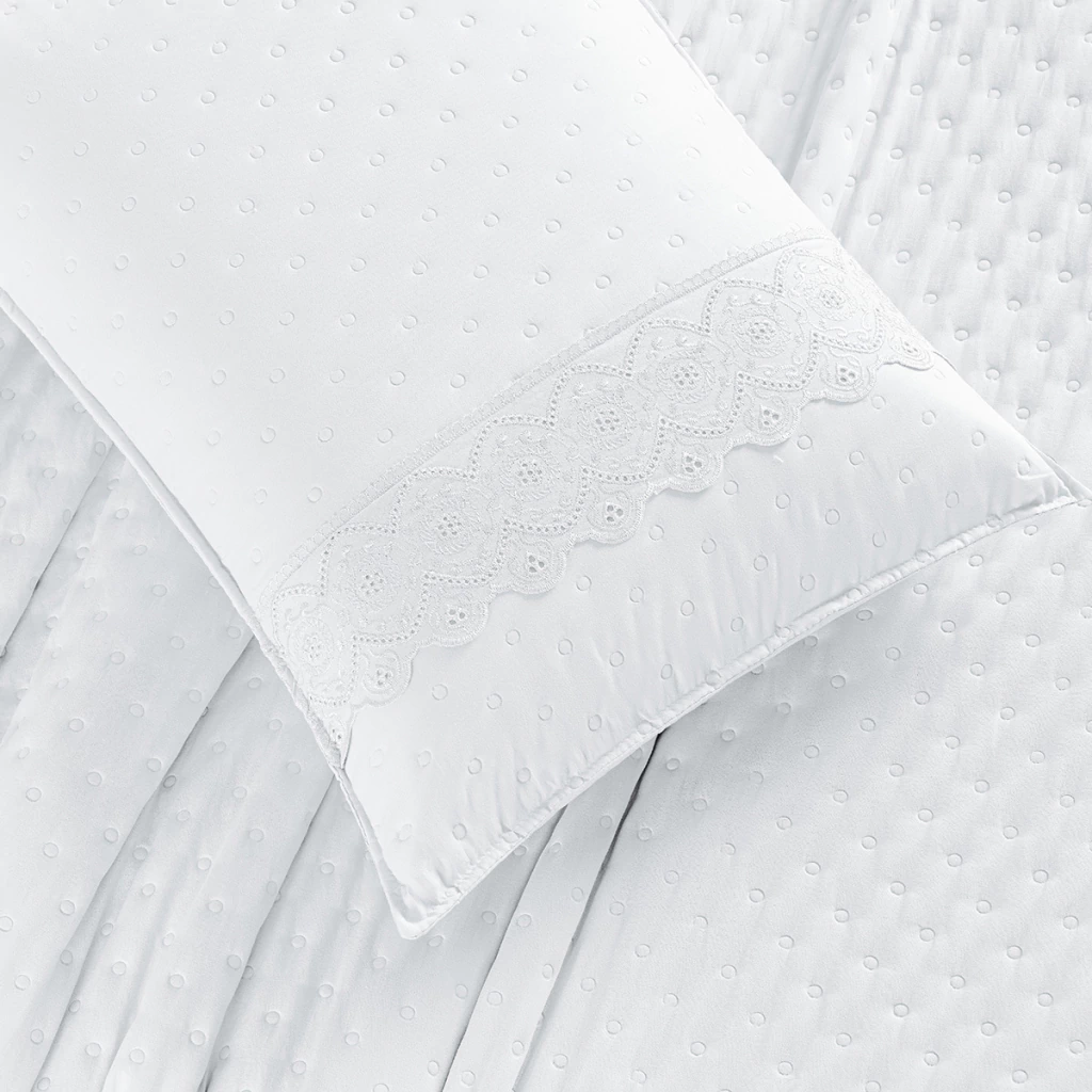 Feito com Micropercal de 200 fios, seu design é enriquecido com detalhes em laise bordada, proporcionando um toque especial. O acabamento em matelassê ultrassônico não apenas garante durabilidade, mas também confere um visual texturizado. Ideal para transformar seu quarto em um ambiente de conforto e estilo incomparáveis.